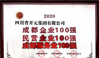 開元集團蟬聯“2020成都市百強企業”