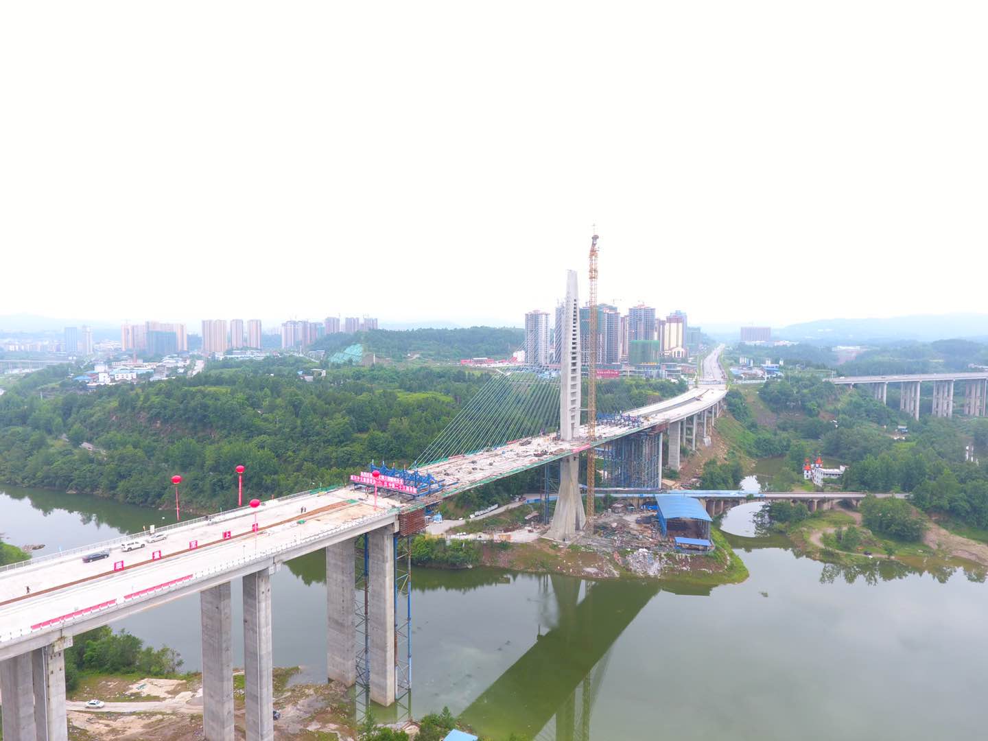 6月28日晚23點(diǎn),煙花璀璨,鞭炮齊鳴,隨著最后30方混凝土澆灌作業(yè)的順利進(jìn)行,歷時(shí)4年建設(shè)的義陽(yáng)大橋?qū)崿F(xiàn)合龍,標(biāo)志著巴中以及川東北地區(qū)首個(gè)特大異型獨(dú)臂斜拉橋的主體工程順利完工。巴中恩陽(yáng)新區(qū),一座嶄新地標(biāo)巍然屹立。而達(dá)成基建狂魔這一新成就的正是四川開(kāi)元集團(tuán)。