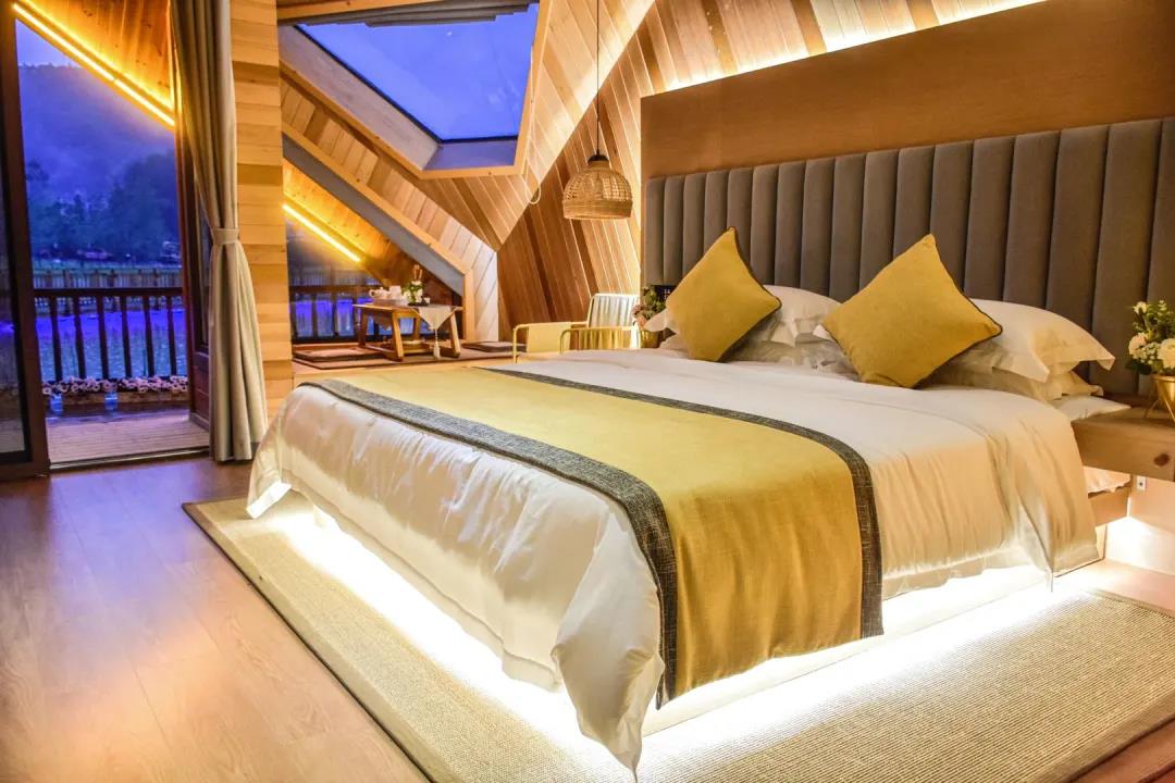 和谷·秋池酒店的客房分為“巴山”及“秋水”兩個區域,由19棟全木結構建筑組成,擁有56間45平米-138平米的豪華客房與獨立套房。每間客房均設有寬敞露臺,目之所及滿山翠綠,碧波蕩漾。靠近露臺的一側特設日式榻榻米和精致茶臺,讓賓客得以在迷人景致中舒坦心境,享受私密的靜謐空間。